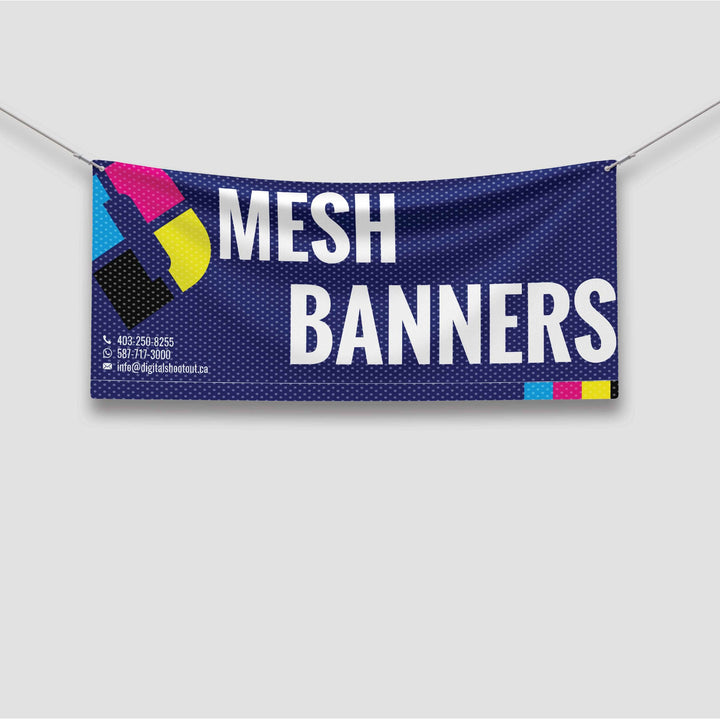 MESH BANNERS ARE THE PERFECT CHOICE FOR ADVERTISING WHERE WIND CAN BE A CONCERN. MADE OF UV- AND WATER-RESISTANT POLYESTER, THE BANNER’S MESH WEAVE LETS THE WIND PASS RIGHT THROUGH, EFFECTIVELY REDUCING WIND LOAD. MESH BANNERS ARE PERFECT FOR OUTDOOR USE AND COME WITH GROMMETS OR REINFORCED EDGES FOR EASY HANGING.